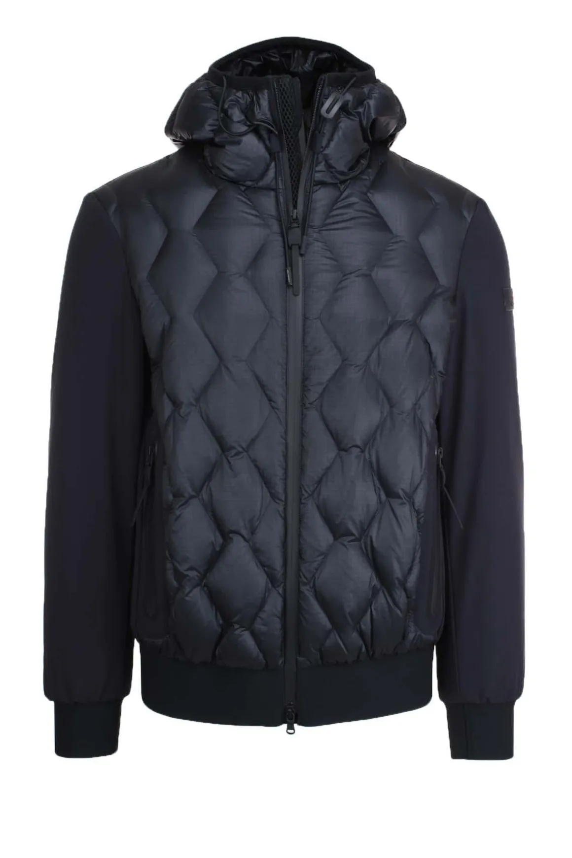 Giubbotto bomber uomo, realizzato con due tessuti, nylon e neoprene, impunturato sul davanti a rombi, imbottito in piuma naturale, chiusura con zip doppio cursore termosaldata, tasche ai fianchi, polsini e fondo vita elasticizzati, cappuccio fisso, logo Peuterey sul braccio, vestibilita regular, un capo comodo e confortevole dalle grandi doti stilistiche, 100% poliamide.