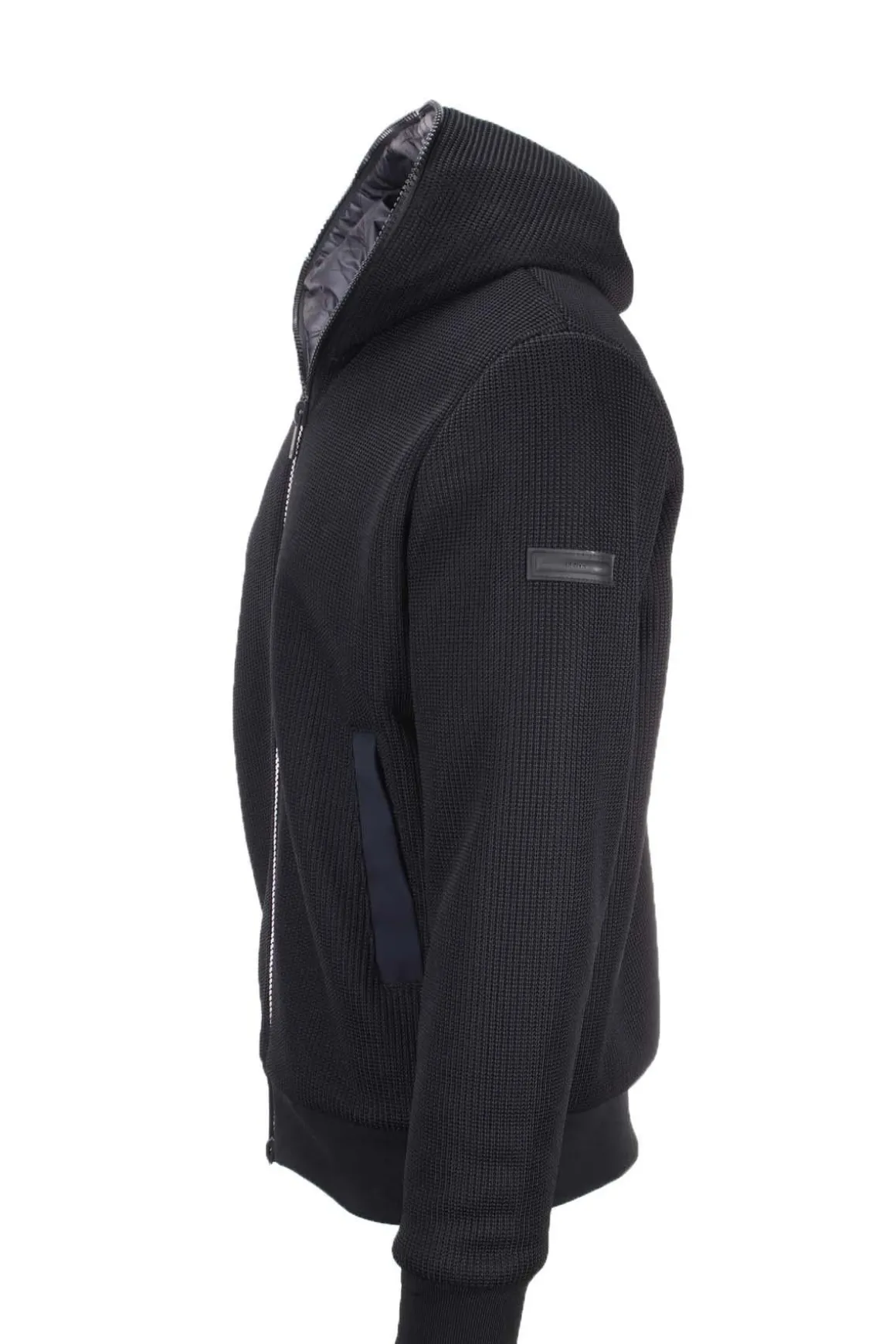 Giubbotto bomber uomo Unity, cappuccio fisso, chiusura centrale con zip doppio cursore, tasche anteriori ai fianchi, logo sul braccio Unity, intermo trapuntato con imbottitura calda ma leggera, questo capo altamente innovativo è realizzato in tessuto Tricotech, una maglina tecnica a coste, con grandi doti di flessibilità e confort, studiato per coniugare look e funzionalità per uno nuovo stile urban metropolitano.