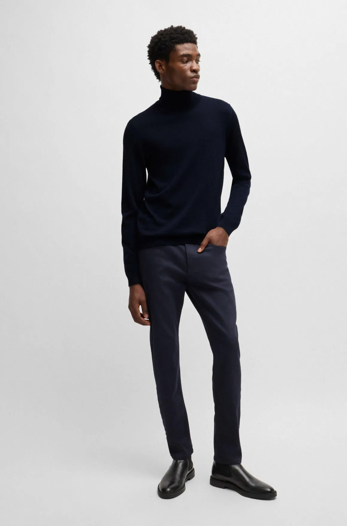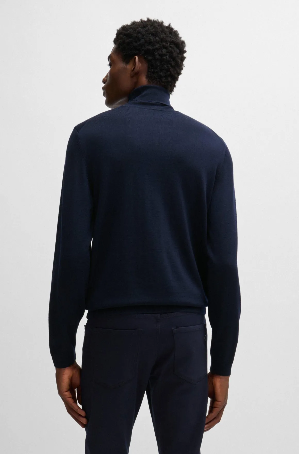 Dolcevita in lana firmato Boss, un capo traspirante, confortevole grazie al filato con cui è realizzato, leggero, adatto anche come sottogiacca, ha una vestibilità slim, polsini, collo e fondo vita in costina elasticizzata, 100% lana vergine.