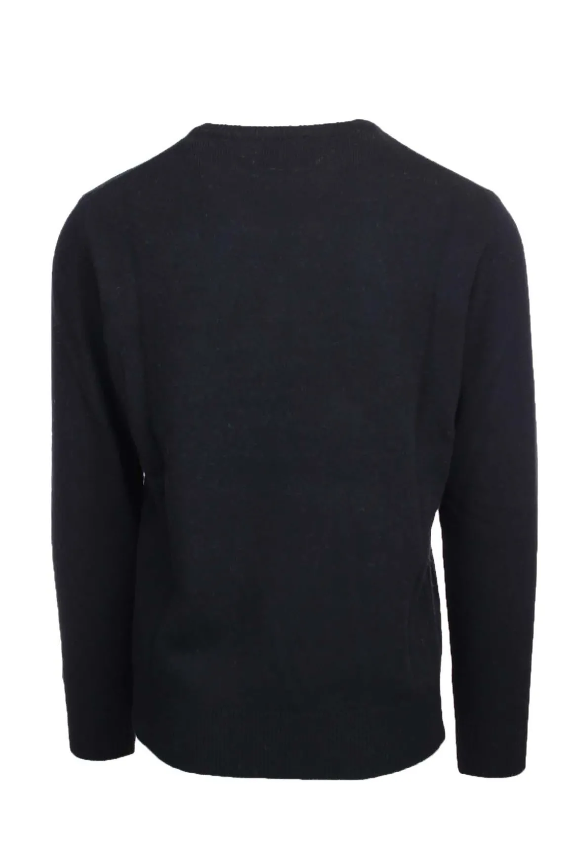 Maglia pullover girocollo uomo realizzata in morbida lana e cachemire, polsini e vita in maglina elasticizzata, Logo Saint Barth, vestibilità regular fit, 40% lana 25% viscosa 10% cachemire 25% poliammide.