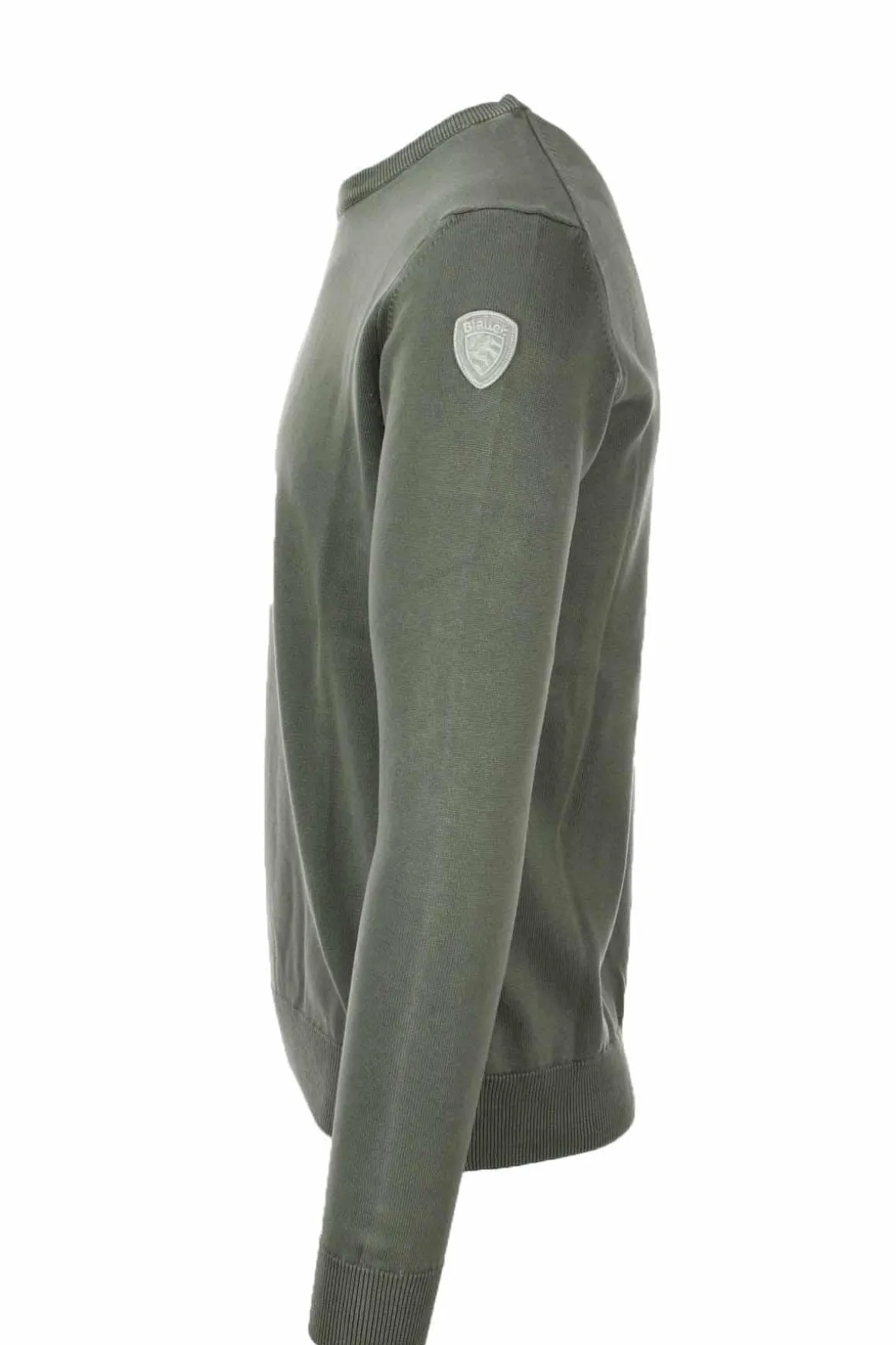 Pullover girocollo realizzato in filo di cotone con polsini e fondo vita in maglina elasticizzata, patch Blauer applicato sul braccio, vestibilità regolare, 100% cotone.