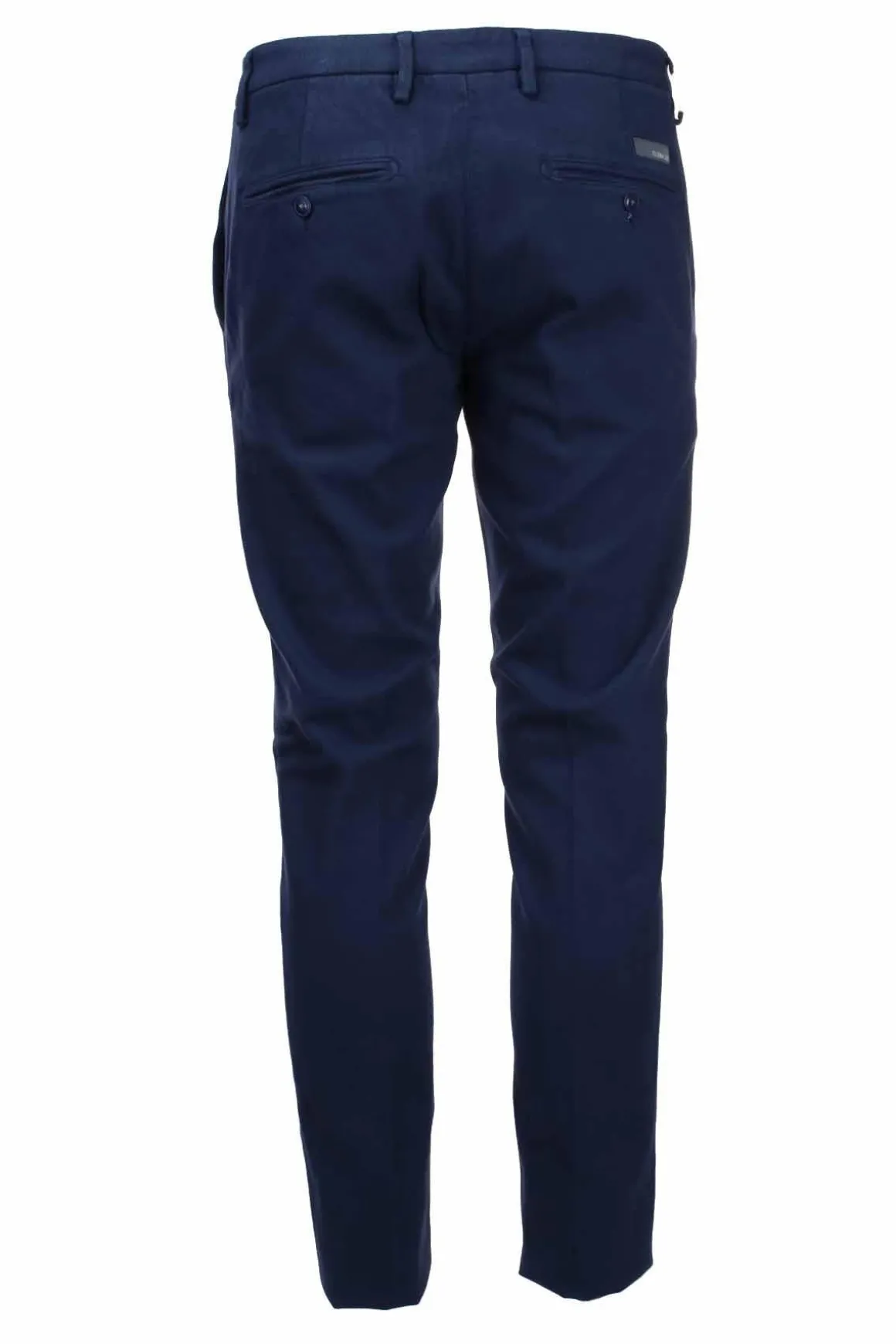 Chiusura con zip e bottone interno, vestibilità slim fit, tasche america oblique, doppia tasca posteriore con bottoni, fondo 17cm, 98% cotone 2% elastane.