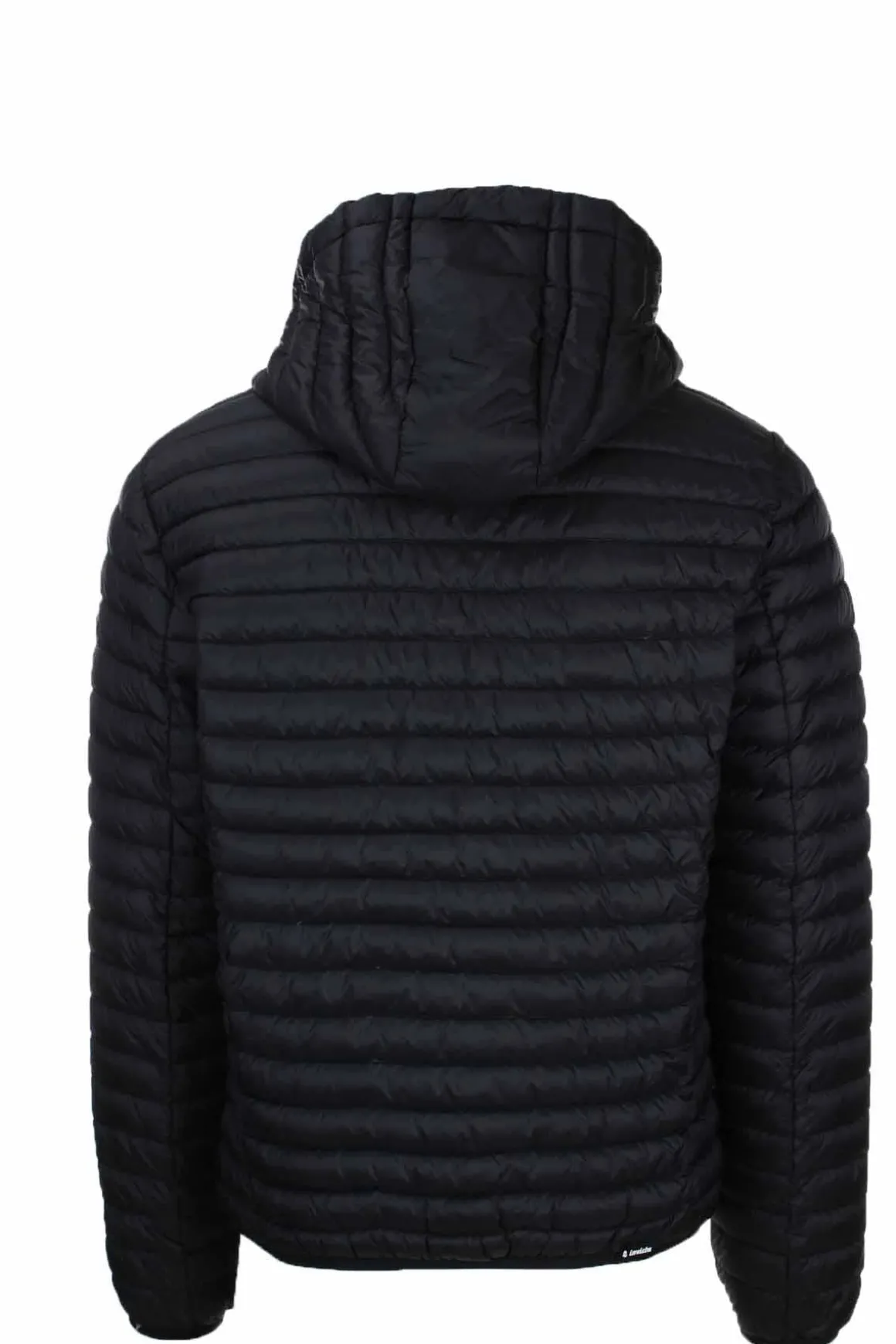 Chiusura centrale con zip doppio cursore in tinta, tasche laterali con zip a scomparsa, cappuccio con laccio coulisse, logo applicato sul braccio, polsini delle maniche e fondo vita con elastico per una perfetta vestibilità, interno foderato in contrasto, esterno 100% poliestere, imbottitura interna 100% poliestere, vestibilità regular.