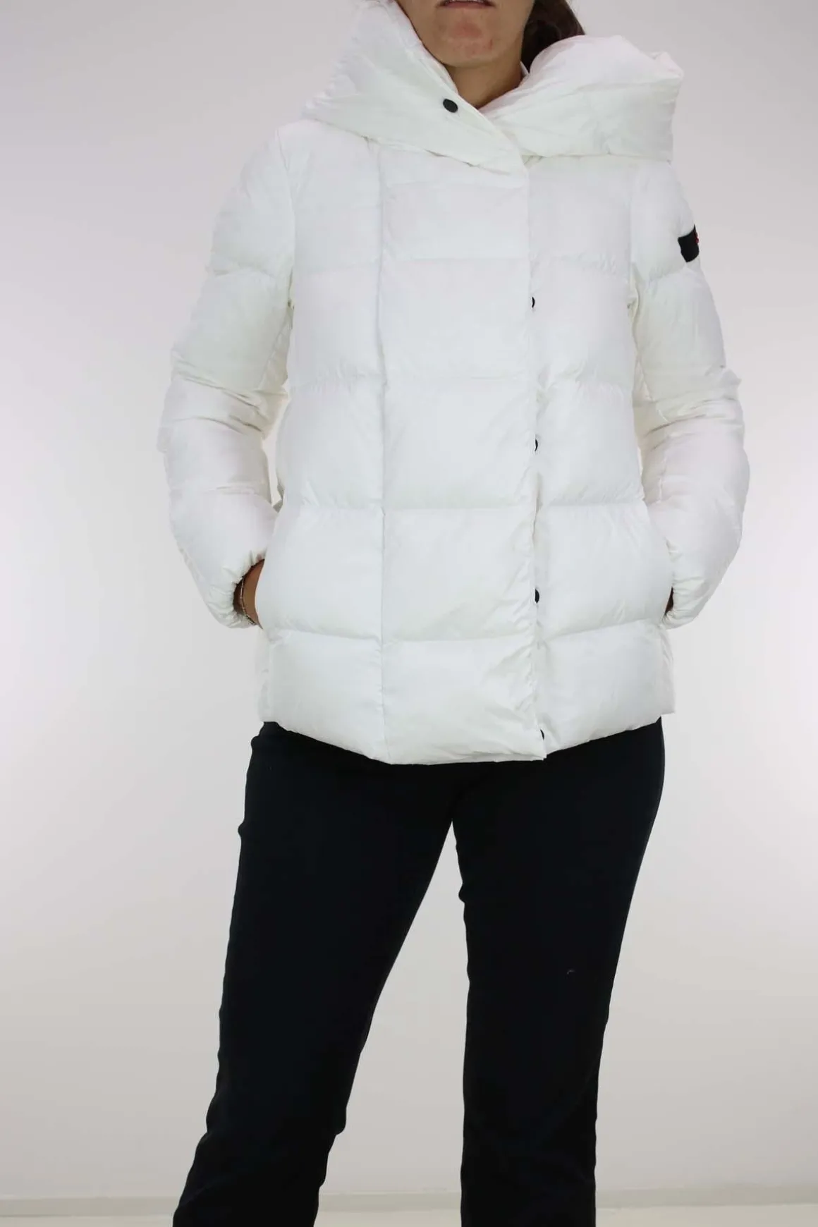 Piumino corto Peuterey donna, realizzato in tessuto ecologico superleggero, chiusura centrale nascosta da patta e bottoni a pressione, tasche anteriori ai fianchi, vistoso collo alto e cappuccio fisso, imbottitura 80% piumino, 20% piuma, tessuto 100% poliestere. Un capo ricercato e pratico, ideale da indossare nelle occasioni più informali.
