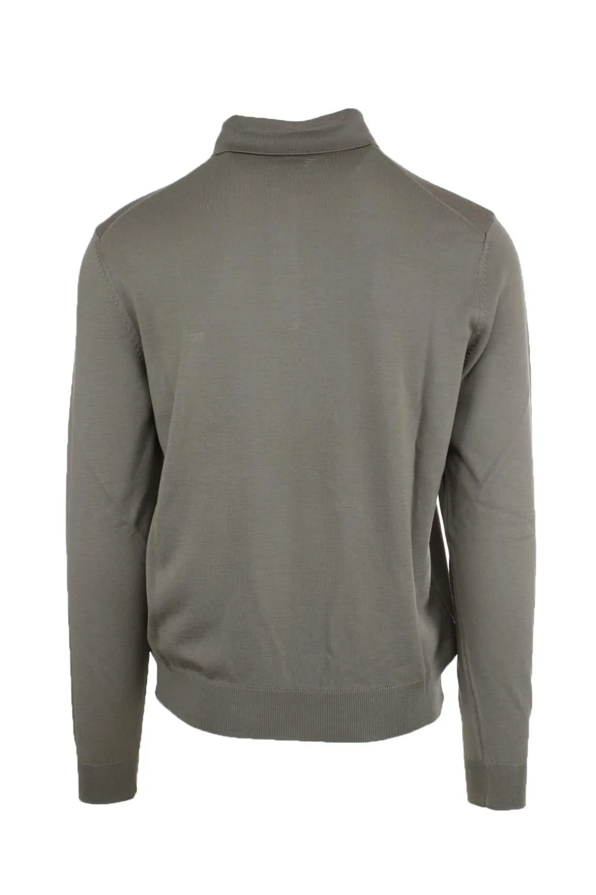 Polo uomo manica lunga in lana rasata, colletto a tre bottoni, polsini e fondo vita elasticizzati, vestibilità regolare, 100% lana merinos.