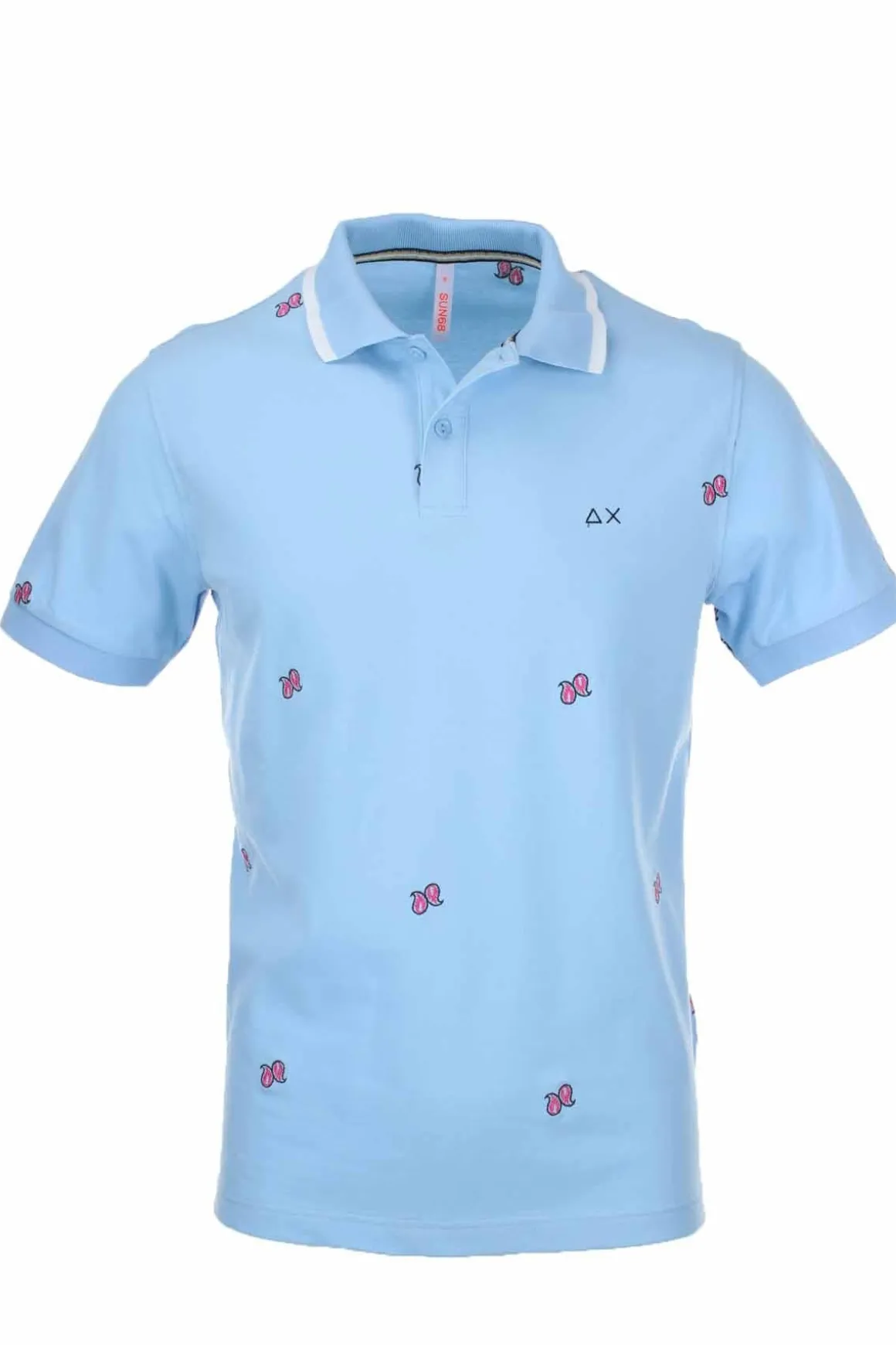 Simpatica fantasia per questa polo firmata Sun68, colletto a due bottoni profili del collo e delle maniche in contrasto, logo sul petto, spacchetti nel fondo, vestibilità regular, 100% cotone piquet. Abbinala con le altre novità della collezione Sun 68 Primavera Estate Uomo.
