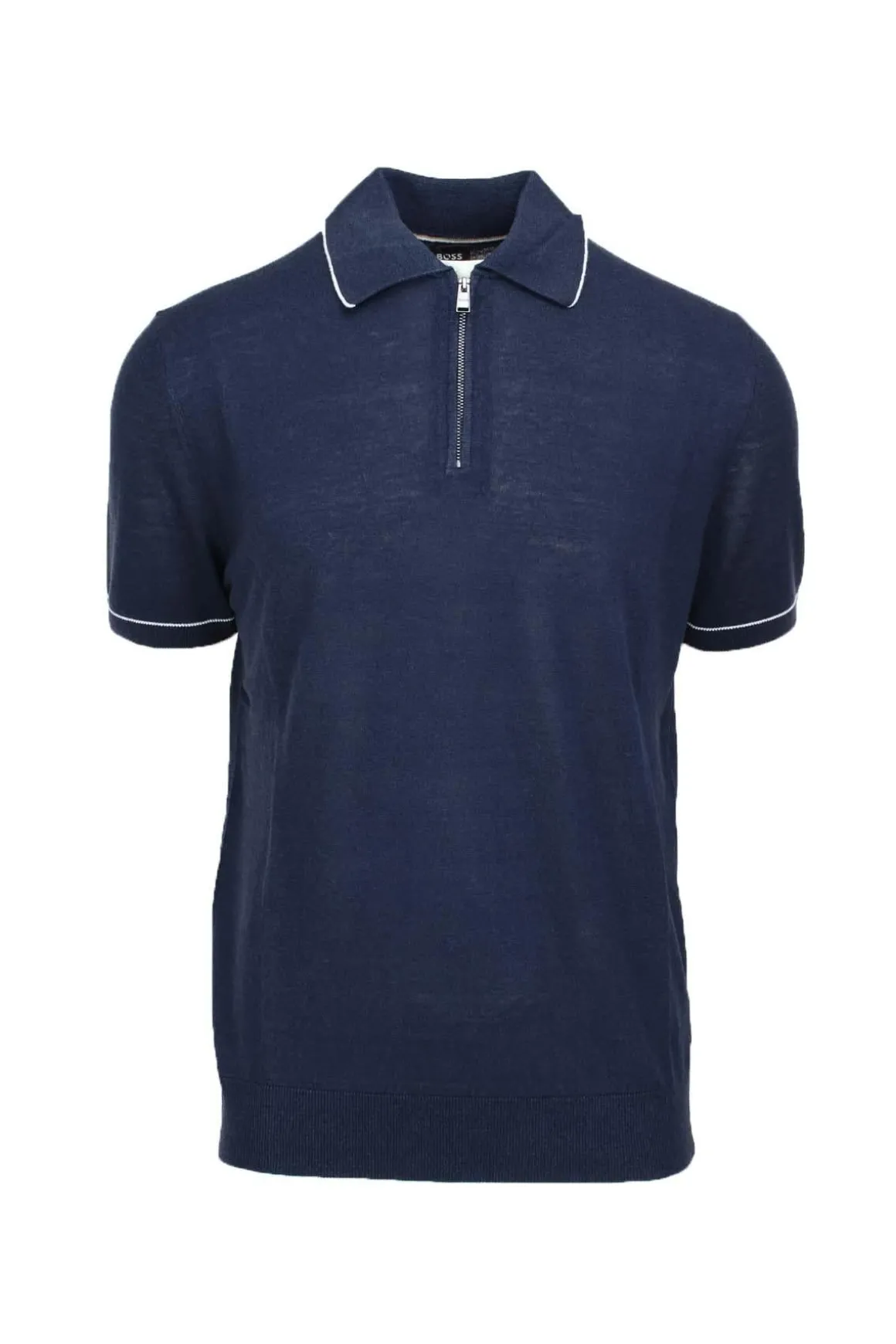 Polo mezza manica in filo di misto lino, profili in contrasto su collo e maniche, chiusura con zip, logo boss a bandiera sul fianco, vestibilità regolare/comoda, si consiglia acquistare una taglia inferiore alla solita, capo leggero e confortevole dallo stile fashion da indossare tutta l’estate, 56% lino, 44% viscosa.