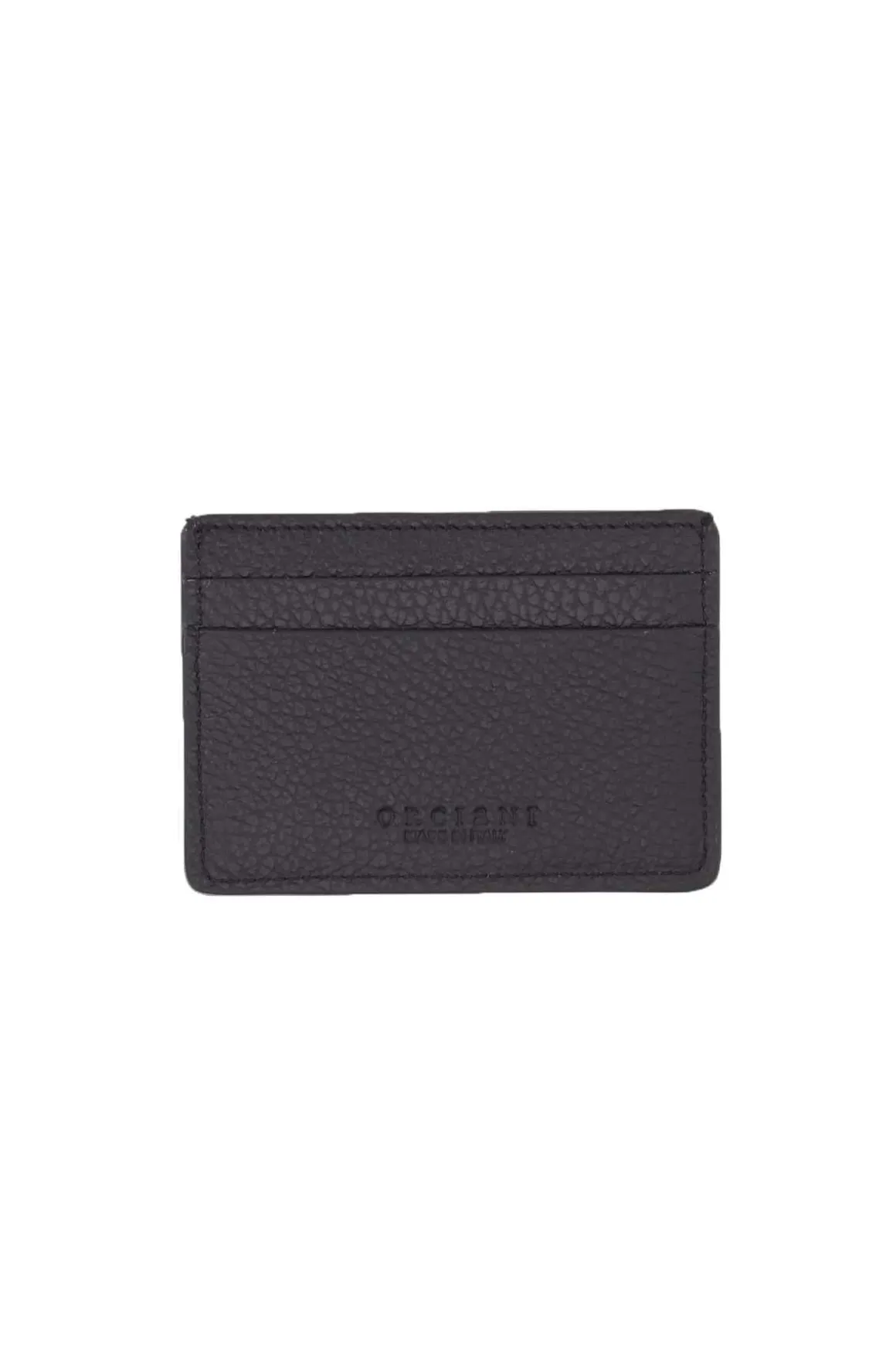 Portacarte in pelle martellata Orciani, protezione antifrode RFID, quattro scomparti portacarte, scomparto centrale, logo finitura palladio. Misure cm. 10×8.