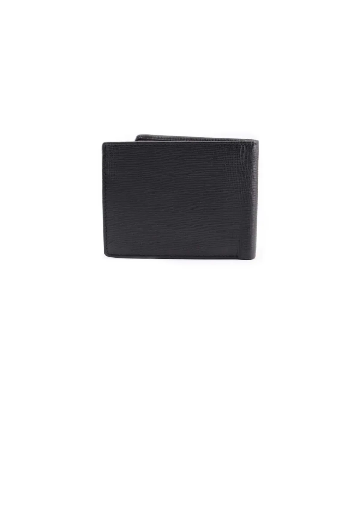 Pratico portafoglio in pelle saffiano con portamonete, scomparto per tre carte di credito, scomparto banconote, portadocumenti, misure cm. 11×8,5.