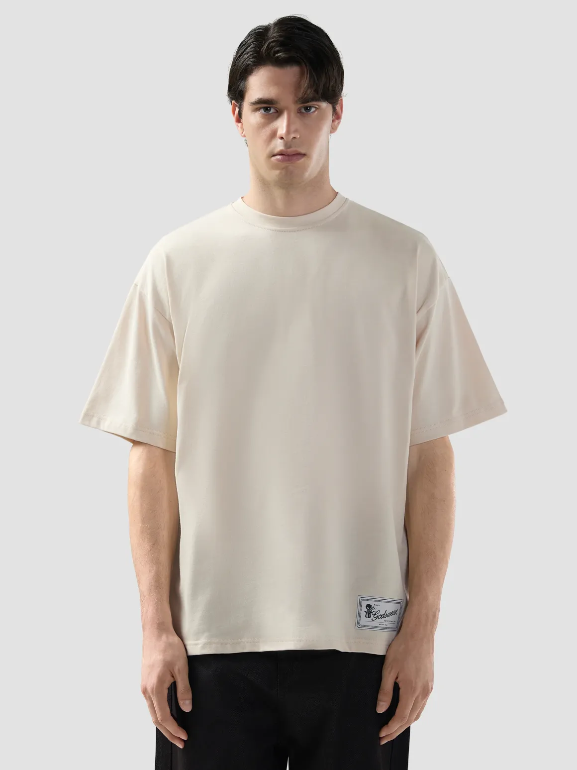 T-shirt uomo mezza manica in jersey di cotone, stampa sul retro MAGIC, patch con logo GCDS sul fondo, taglio dritto, 100% cotone.
