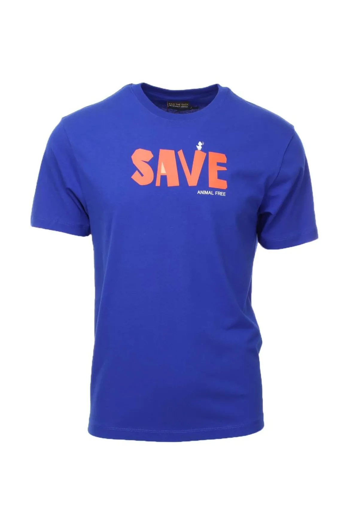 T-shirt uomo mezza manica con stampa SAVE, logo Save The duck, realizzata in 100% jersey di cotone, vestibilità regolare.