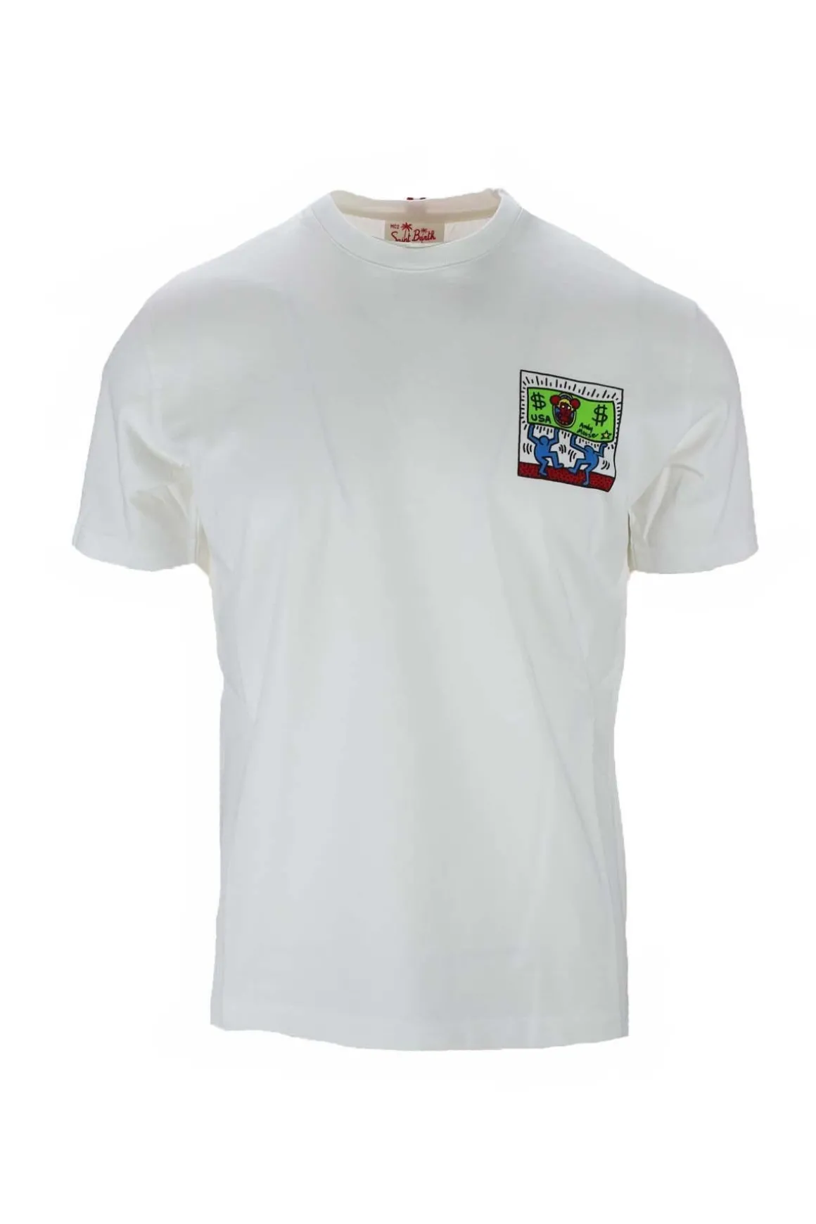 T-shirt mezza manica uomo, stampa esclusiva Keith Haring sul retro, Limited Edition, ricamo MC2 Saint Bart nella manica, realizzata in jersey di cotone, vestibilità regolare, 100% cotone.